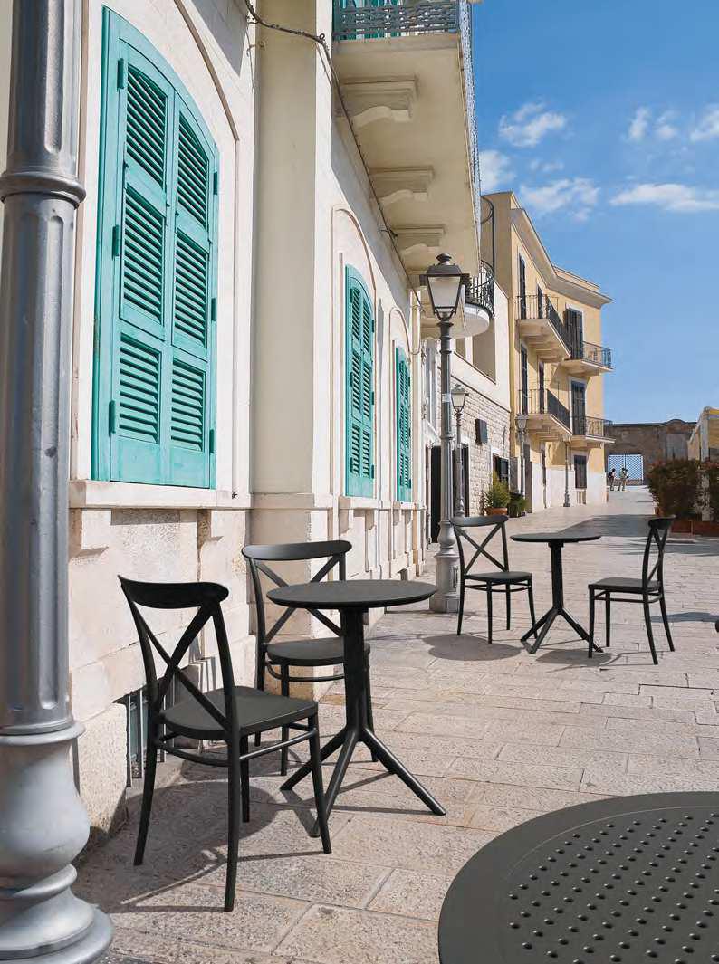 La chaise CROSS est idéale pour allier durabilité, facilité d’entretien et design attractif, notamment pour les terrasses et zones à forte fréquentation.