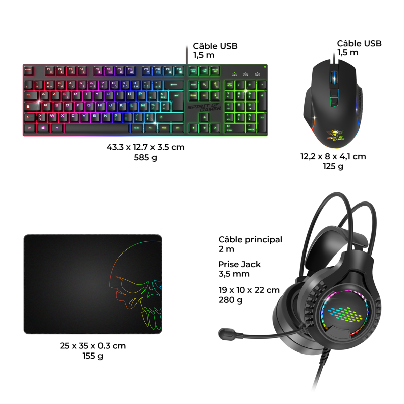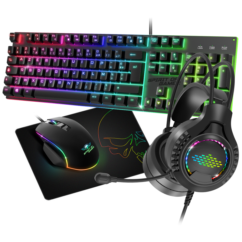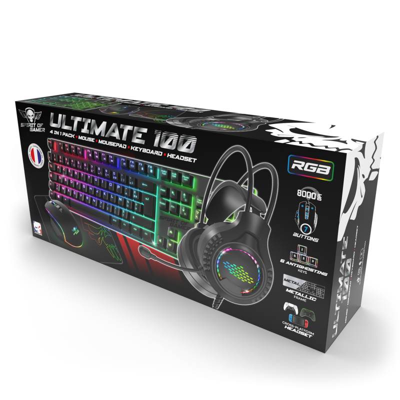 Pack Gaming ULTIMATE 100 – Clavier, souris, casque & tapis RGB (4-en-1)