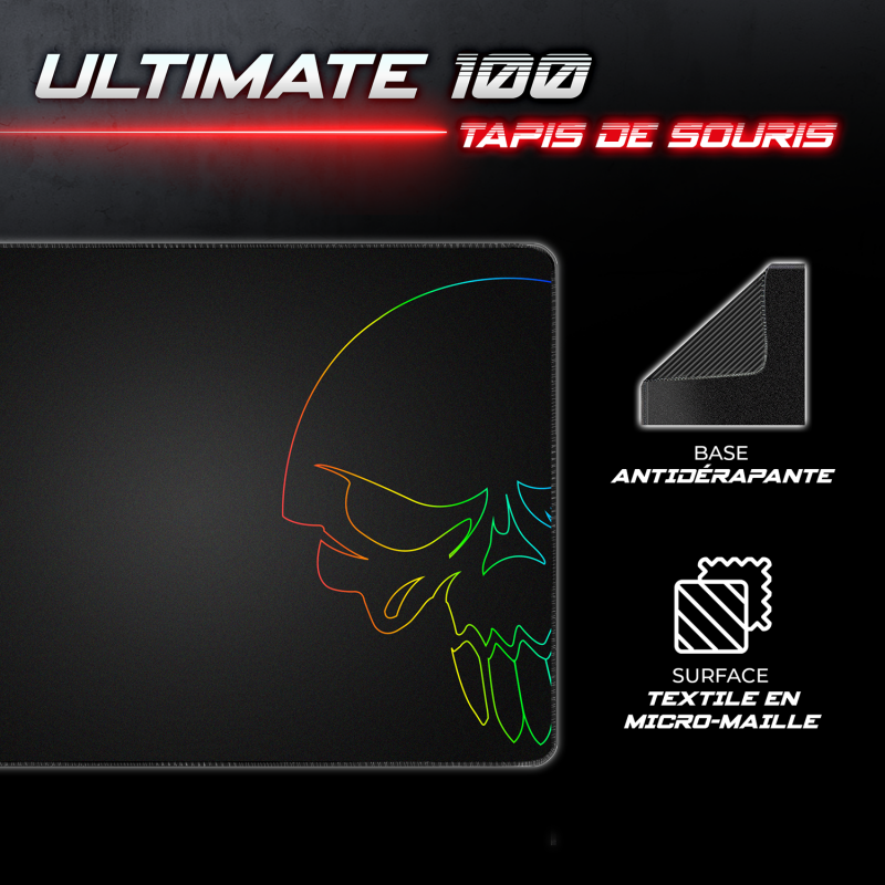 Enfin, le tapis de souris Ultimate 100, avec sa surface tissu optimisée et sa base antidérapante, assure une glisse fluide et précise, idéale pour FPS comme MOBA.